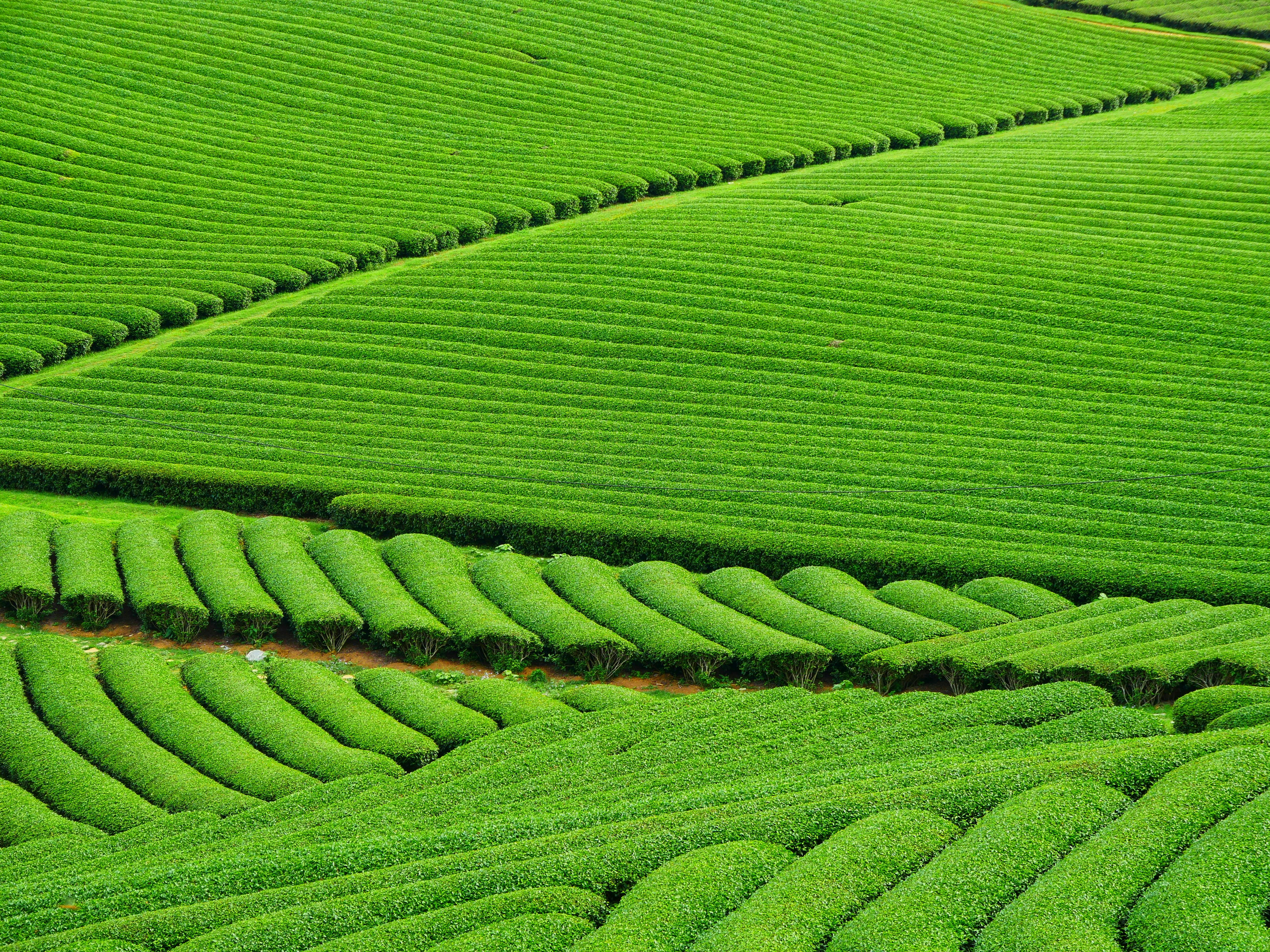 제주도: 화산토양과 온난한 기후 덕분에 좋은 품질의 유기농 녹차가 많이 생산됩니다.